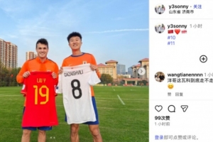 體育資訊11月11日訊 今日,泰山隊后衛(wèi)劉洋更新社媒,曬出自己和隊友卡扎伊什維利相互交換國家隊球衣的合照。