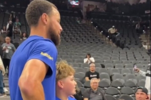 GIF-獨(dú)腿小球迷稱庫(kù)里是自己最喜歡的球員 庫(kù)里暖心合影+給球迷的假肢簽名