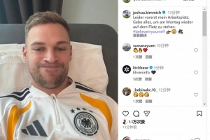 基米希社媒曬出自己在醫(yī)療室的照片,并寫(xiě)道:“遺憾的是這里暫時(shí)成為了我的工作場(chǎng)所,我會(huì)竭盡全力,爭(zhēng)取在下周一(對(duì)陣斯洛伐克)重返賽場(chǎng)?!?/p>