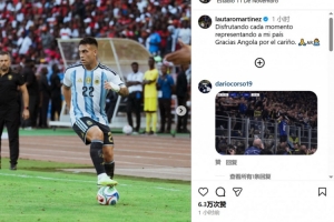 體育資訊11月15日訊 在友誼賽2-0戰(zhàn)勝安哥拉后,阿根廷前鋒勞塔羅在社交媒體上曬圖,慶祝球隊(duì)獲勝。