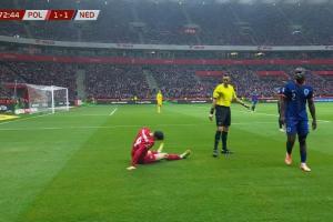 體育資訊11月15日訊 波蘭vs荷蘭第74分鐘,萊萬在爭搶時拉傷,直接坐下了,但暫時沒有換人。