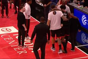 GIF-伊森受傷 亞當(dāng)斯將其攙扶離場(chǎng)