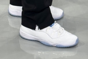球鞋記者Nick DePaula報(bào)道,庫(kù)里的私人保鏢,他今天穿著的是 Air Jordan 11 “Columbia”配色。