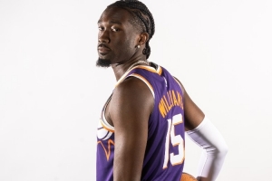 談及 馬克?威廉姆斯能在防守端從1號(hào)位防到5號(hào)位的能力,古德溫表示:“他是這么跟我們說(shuō)的,我相信他。他不僅說(shuō)了,還一直在用行動(dòng)證明?!?/p>