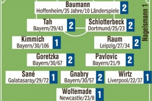 后衛(wèi):基米希(1)、若納坦-塔(2)、施洛特貝克(2)、勞姆(2)