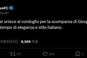 尤文官方寫道:“尤文圖斯俱樂部對喬治-阿瑪尼的逝世表示哀悼,他是意大利優(yōu)雅與風(fēng)格的永恒象征?!?/p>