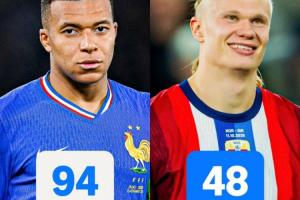 哈蘭德與姆巴佩的國家隊(duì)進(jìn)球數(shù)一樣,但姆巴佩所用場次為94場,哈蘭德場次僅為姆巴佩的一半多一點(diǎn)。