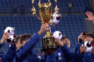體育資訊11月18日訊 熊貓杯頒獎(jiǎng)典禮,2勝1負(fù)的韓國隊(duì)捧起冠軍獎(jiǎng)杯,中國隊(duì)1勝1平1負(fù)收獲亞軍銀盤。