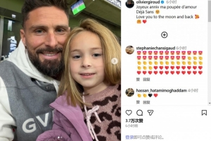 體育資訊11月19日訊 法國前鋒吉魯如今重返祖國效力里爾,作為一名父親,他在社交媒體上曬出了自己和女兒的合照并祝其5歲生日快樂。