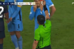 此役第64分鐘,本坦庫爾鏟到對(duì)方球員腳踝,被裁判直接出示紅牌罰下,目前烏拉圭1-5落后于美國(guó)。