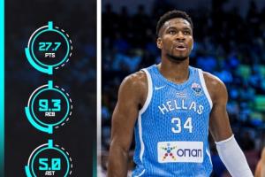 今年歐錦賽至今,字母哥出戰(zhàn)3場(chǎng)比賽,效率非常變態(tài),他場(chǎng)均上陣28.7分鐘可以砍下27.7分9.7籃板5助攻1搶斷,投籃命中率是69.6%,三分命中率為100%(1中1),罰球命中率是62.1%,場(chǎng)均正負(fù)值+18,場(chǎng)均效率值為32.3%。