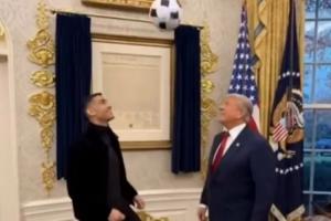 美國總統(tǒng)特朗普在社媒放出一段與C羅踢球的AI生成視頻,并配文:“C羅是個(gè)很棒的人。很高興在白宮與他見面。他既聰明又酷!?。 萍{德·特朗普總統(tǒng)”