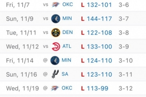 體育資訊11月21日訊 國王今天96比137不敵灰熊,遭遇8連敗。