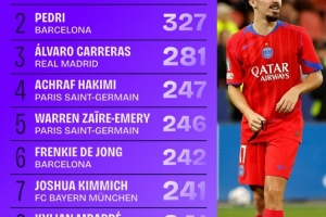 體育資訊11月21日訊 數(shù)據(jù)顯示,維蒂尼亞的進(jìn)攻三區(qū)完成傳球次數(shù)位列五大聯(lián)賽第一。
