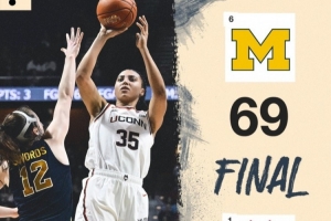體育資訊11月22日訊 NCAA常規(guī)賽,康涅狄克大學(xué)女籃72-69險(xiǎn)勝密歇根大學(xué)。