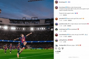 費爾明也在賽后通過社媒曬出自己的激情慶祝照,并配文:“多么精彩的巴薩回家之戰(zhàn)!能在諾坎普球場出場并進球,簡直像做夢一樣!感謝巴薩球迷的支持!”