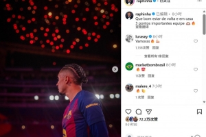 本場(chǎng)比賽也是巴薩回歸諾坎普球場(chǎng)首戰(zhàn),迎來傷愈復(fù)出的拉菲尼亞在社媒曬照寫道:“回家的感覺真棒!球隊(duì)取得關(guān)鍵三分”
