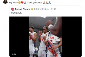 賽后,艾維的母親轉發(fā)了活塞官方發(fā)布的賽后慶祝艾維復出視頻,并配文:我的小心肝?。「兄x上帝!