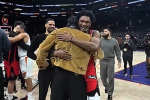 GIF-火箭&太陽(yáng)賽后雙方球員敘舊擁抱