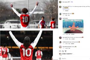 阿森納青訓(xùn)小將Luis Mu?oz在社媒發(fā)布了自己和埃澤身穿10號球衣慶祝的照片,配文:@埃澤 我夢想著有一天,或許也能像你一樣??????#letitallworkout