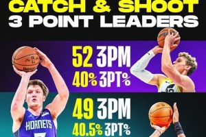 體育資訊11月26日訊 今天,美媒ClutchPoints盤點了賽季至今接球投三分產(chǎn)量最大的4名球員。