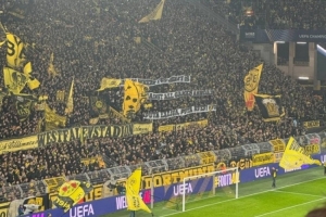 體育資訊11月26日訊 今天凌晨,多特在歐冠大勝比利亞雷亞爾,多特球迷在比賽中拉起橫幅,與比利亞雷亞爾球迷一同反對西甲海外賽。