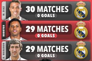 體育資訊11月26日訊 皇馬前鋒羅德里戈本賽季狀態(tài)低迷,出戰(zhàn)14場比賽1球未進(jìn)。目前羅德里戈俱樂部連續(xù)進(jìn)球荒已經(jīng)長達(dá)29場,排名皇馬隊史第2,僅次于30場球荒的馬里亞諾。羅德里戈上次代表皇馬取得進(jìn)球,還是今年3月對陣馬競的比賽。
