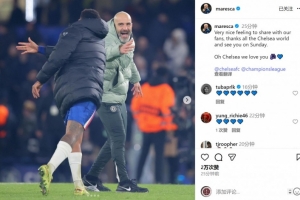 切爾西主帥馬雷斯卡社媒曬照慶祝勝利,配文:“與我們的球迷共同分享勝利的喜悅,這種感覺(jué)太棒了,感謝整個(gè)切爾西大家庭,周日見(jiàn)。切爾西,我們深?lèi)?ài)著你(歌詞)!”
