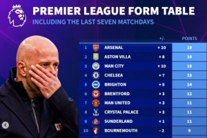 體育資訊11月27日訊 德轉(zhuǎn)列英超各隊最近7輪聯(lián)賽得分,阿森納19分居首,維拉、曼城列二三位。利物浦僅高于狼隊,排在倒數(shù)第二。