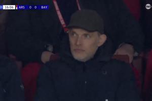 體育資訊11月27日訊 阿森納vs拜仁第17分鐘,轉(zhuǎn)播鏡頭給到看臺(tái),英格蘭主帥圖赫爾在現(xiàn)場(chǎng)。
