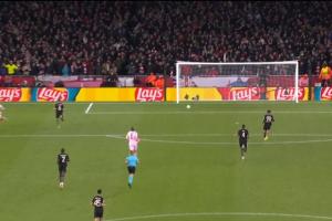埃澤發(fā)動(dòng)長傳后,諾伊爾繼續(xù)向前的出擊沒能攔下足球,反倒送給對手一個(gè)完全的空門,馬丁內(nèi)利笑納大禮打空門輕松得手,幫助槍手殺死比賽懸念!