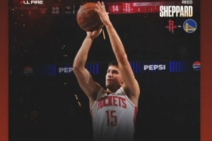 賽后阿門·湯普森在INS上轉(zhuǎn)發(fā)了今天謝潑德的數(shù)據(jù)海報(bào)。