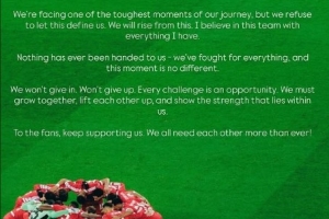對于球迷們,請繼續(xù)支持我們。我們比任何時候都更需要彼此的力量!