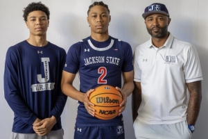 體育資訊11月28日訊 SLAM University報道,詹姆斯前隊友莫·威廉姆斯目前是NCAA杰克遜州立大學(xué)男籃主教練,而他的兒子梅森·威廉姆斯(圖中)剛剛承諾加盟,明年高中畢業(yè)后,他將加盟杰克遜州立大學(xué),為父親效力。