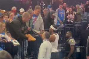 亞歷山大在賽前為主場球迷簽名,來者不拒。而球迷也排起了長隊(duì)。