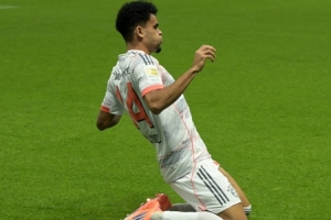 第44分鐘,金玟哉送出精準(zhǔn)長(zhǎng)傳,迪亞斯禁區(qū)內(nèi)倒地完成做球,格雷羅順勢(shì)撩射破門。