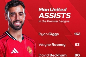 B費曼聯(lián)生涯英超助攻數(shù)已經(jīng)達到56次,超越名宿斯科爾斯,以下為曼聯(lián)隊史英超助攻榜: