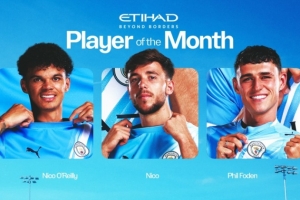 體育資訊12月1日訊 曼城官方公布11月隊內(nèi)最佳候選,奧賴利、尼科·岡薩雷斯、福登三人入圍。