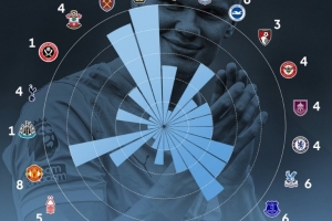 體育資訊12月3日訊 哈蘭德達(dá)成英超百球里程碑,英超官方也曬出哈蘭德百球攻破球門對手分布,具體如下: