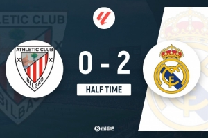 上半場(chǎng)傷停補(bǔ)時(shí)2分鐘,半場(chǎng)結(jié)束,皇馬暫2-0畢爾巴鄂競(jìng)技。