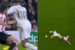 西甲第19輪,皇馬3-0客勝畢爾巴鄂競技,姆巴佩2射1傳。其中第一球,姆巴佩接到阿諾德的長傳,卸球轉(zhuǎn)身擺脫左后衛(wèi)萊奎、帶球推進(jìn)、弧頂變向過掉中衛(wèi)拉波爾特、射門得分,這個過程一氣呵成,萊奎防守姆巴佩時上手拉、下腳鏟都沒攔?。?/p>