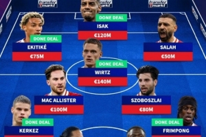 前鋒:?;倏耍?500萬(wàn),法蘭克福)、伊薩克(1.2億,紐卡斯?fàn)枺?/strong>、薩拉赫(5000萬(wàn))
