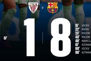 本場比賽中,巴薩女足有3人:洛佩斯、帕約爾和邦馬蒂完成梅開二度,中場吉哈羅更是上演了中場吊射破門的好戲。
