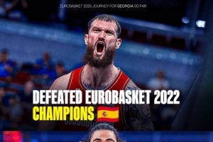 如此一來,格魯吉亞本屆歐錦賽已經先后擊敗上屆歐錦賽的冠軍和亞軍。小組賽格魯吉亞83比69擊敗西班牙,這場比賽也讓他們在相互交手戰(zhàn)績上占優(yōu),最終他們和西班牙都是2勝3負,憑借交手戰(zhàn)績優(yōu)勢,他們拿到小組第4出線,西班牙則小組出局。