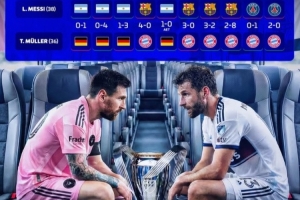 體育資訊12月6日訊 本屆美職聯(lián)總決賽將在邁阿密國際和溫哥華白浪之間舉行,38歲的梅西和36歲的穆勒也再次相遇。《轉(zhuǎn)會市場》也列出了兩人歷史交鋒情況: