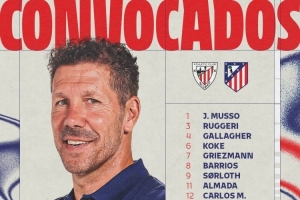 前鋒:7-格列茲曼、9-瑟爾洛特、11-阿爾馬達(dá)、19-阿爾瓦雷斯、20-朱利亞諾-西蒙尼、22-拉斯帕多里、23-岡薩雷斯