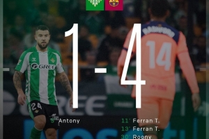 體育資訊12月7日訊 本輪西甲焦點戰(zhàn),巴薩上半場4-1反超貝蒂斯,數據統(tǒng)計顯示西甲聯(lián)賽歷史僅有4支客隊在皇家貝蒂斯主場上半場進球數達到4+: