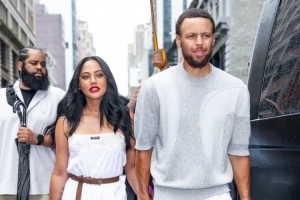 本場(chǎng)比賽,庫(kù)里攜妻子阿耶莎現(xiàn)場(chǎng)觀(guān)戰(zhàn),并被驚出表情包。