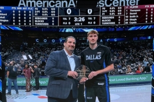 體育資訊12月7日訊 獨行俠主場迎戰(zhàn)火箭,狀元弗拉格賽前領(lǐng)取月最佳新秀獎。