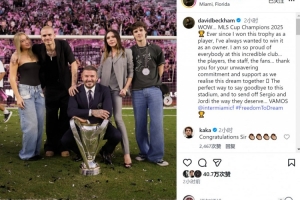 邁阿密國際老板貝克漢姆社媒曬家人與獎杯的合照,并寫道:”2025年美職聯(lián)冠軍??自從作為球員捧起這座獎杯后,我就一直渴望以老板身份再次奪冠?!?/p>
